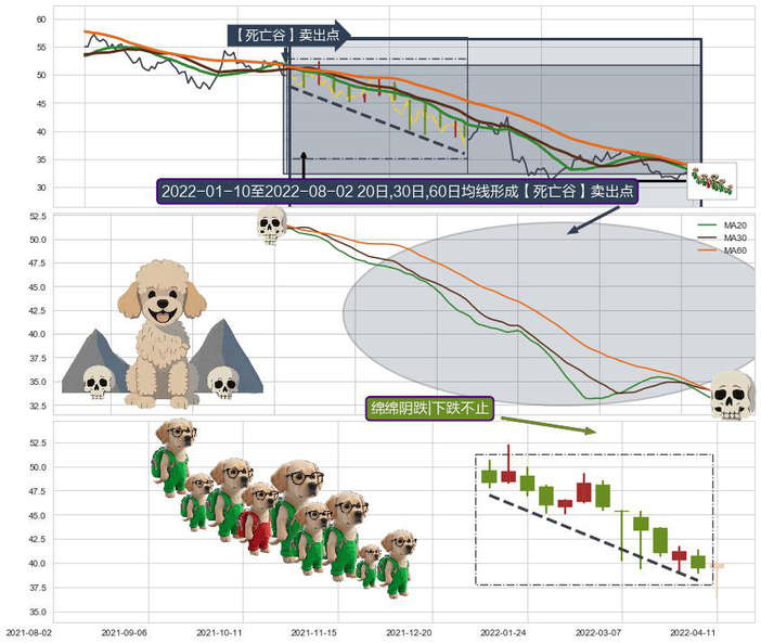 ➢ 下降插入线(坠落线) 🔜 【死亡谷】卖出点死亡谷均线交叉卖出点 综合量化分数:45.98 【偏空】