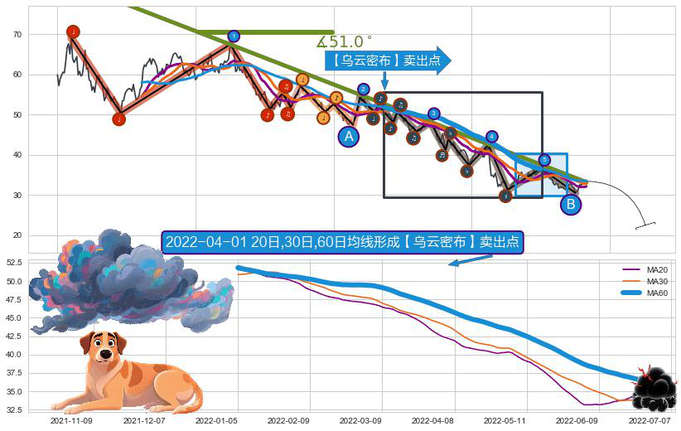 ➣ 🕰 价格走势在2022-06-01至2022-07-22期间形成【乌云密布】卖出点,残存影响值:-27.54
