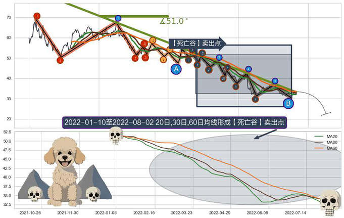 ➣ 🕰 价格走势在2022-01-11至2022-08-02期间形成【死亡谷】卖出点,残存影响值:-40.67