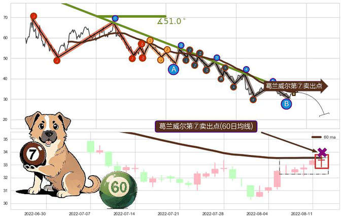 ➣ 🕰 价格走势在2022-08-10至2022-08-12期间形成葛兰威尔第⑦卖出点,残存影响值:-2.32