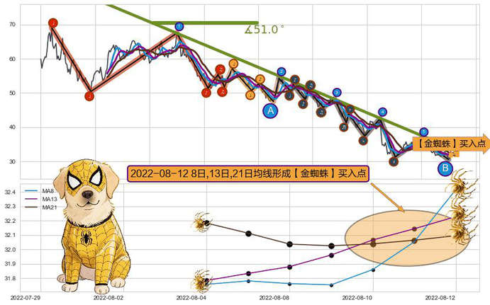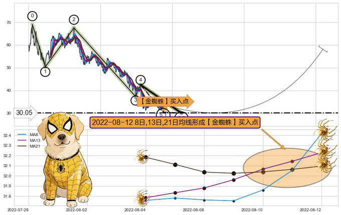 ➣ 🕰 价格走势在2022-08-10至2022-08-12期间形成【金蜘蛛】买入点,残存影响值:33.29