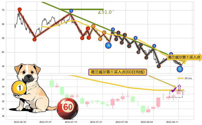➢ 葛兰威尔第①买入点 🔜 波浪理论下跌浪临近浪5反弹点 综合量化分数:50.50 【中性】