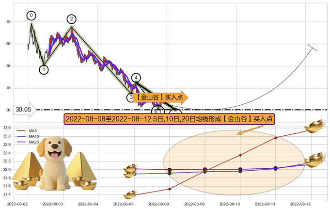 ➣ 🕰 价格走势在2022-08-09至2022-08-12期间形成【金山谷】买入点,残存影响值:29.13