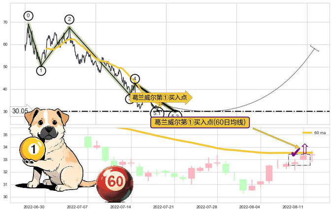 ➣ 🕰 价格走势在2022-08-08至2022-08-12期间形成葛兰威尔第①买入点,残存影响值:0.00