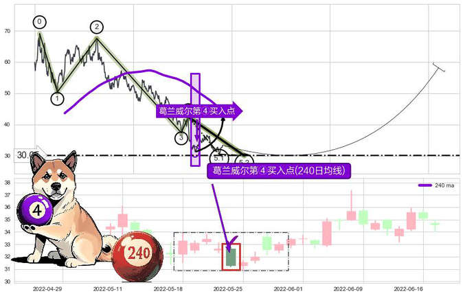 ➣ 🕰 价格走势在2022-05-12至2022-06-06期间形成葛兰威尔第④买入点,残存影响值:11.05