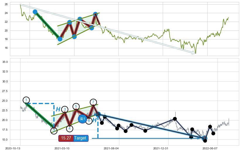 ➣ 最小中继整理跌幅→𝐇: 6.24 (𝐇旗杆的长度:旗杆起点→顶点)