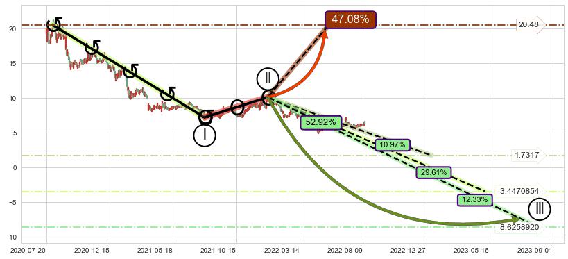 ➣ AI预测: 假定反转启动后, 第❶目标位置(2022-12-19, 7.35)