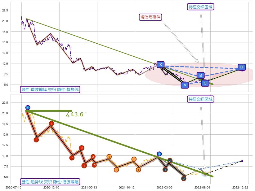 从2020-08-03至2022-06-28,共包含461个交易日,阶段股价下跌-105.09%,阶段股价变动位移路程比: 1 : 8,下跌趋势角度: 43.6