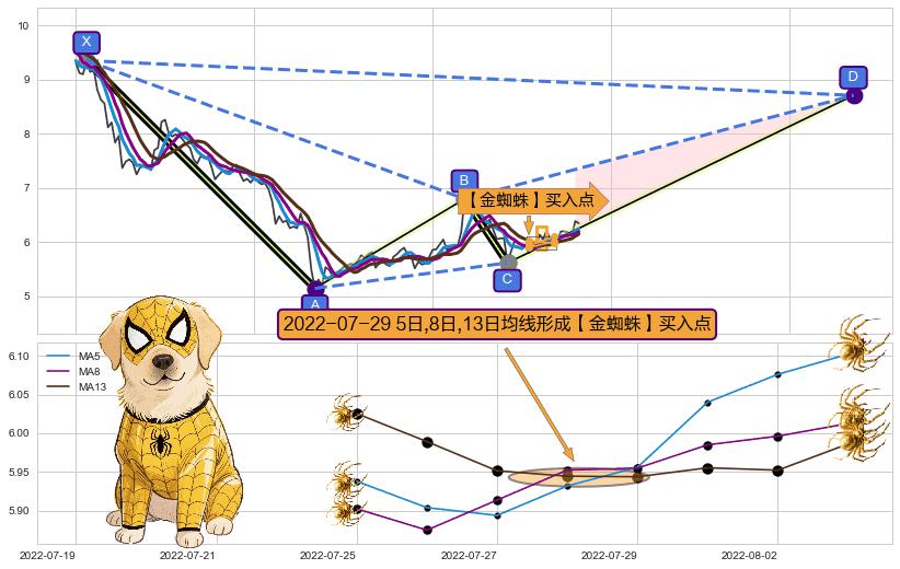 ➣ D点拟合预测价格8.71,距离最后交易收盘价格6.35相差 +37.15%