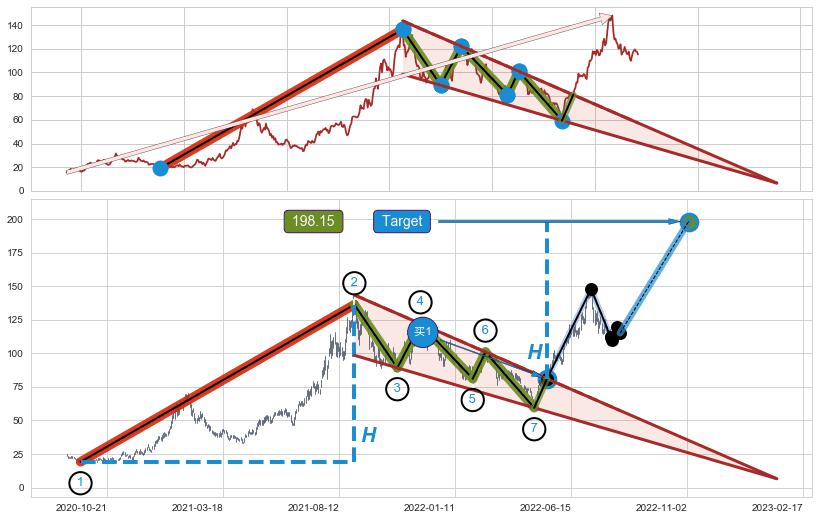 ➢ 最小中继整理涨幅→𝐇: 117.08 (𝐇楔型旗杆的长度:楔型起点→顶点)