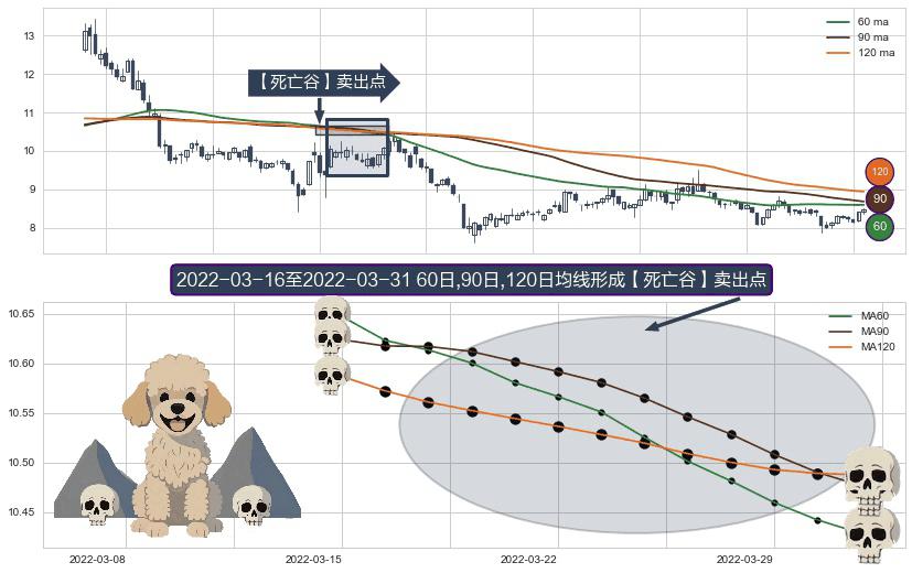 形态多维评估: ⚀ 2022-03-17-日至2022-03-31-日显现 60日-90日-120日均线 【死亡谷】卖出点 看空信号,后市看跌,卖出