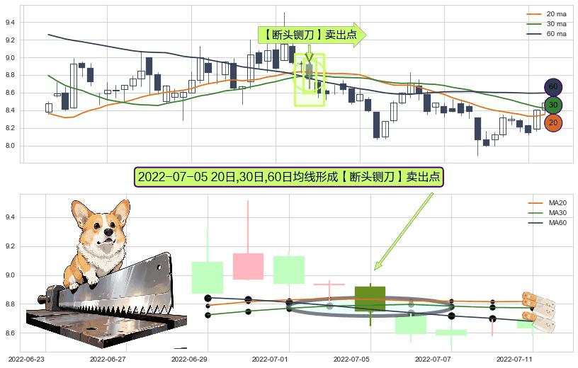 形态多维评估: ⚀ 2022-07-05日显现 20日-30日-60日均线 【断头铡刀】卖出点 看空信号,后市看跌,卖出
