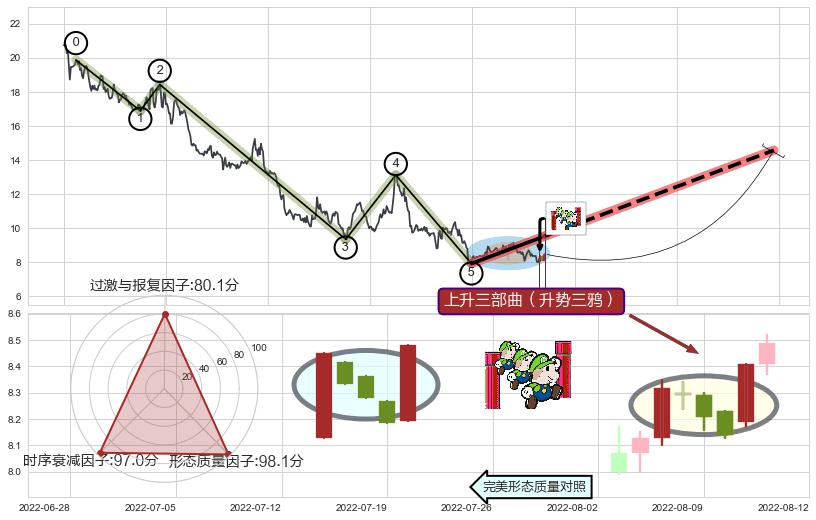 ➣ 【未确认突破,预测即将形成突破】下降三角形整理起点:2022-04-06, 预测突破点:2022-08-23,形态共96交易日