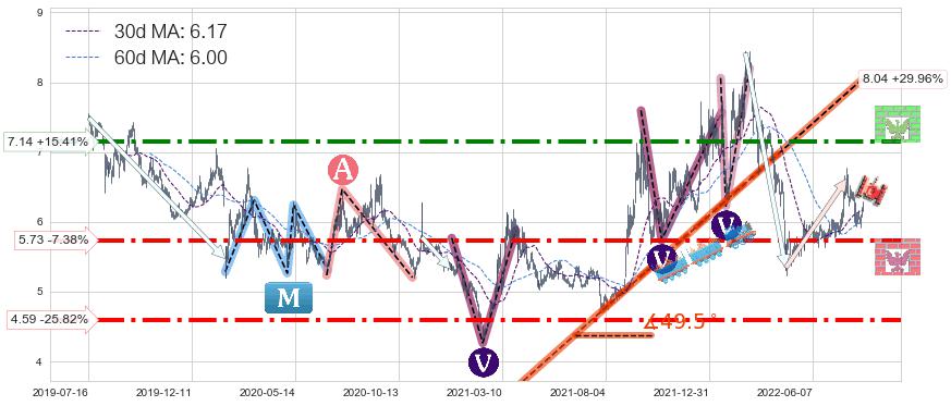 ➢ 2022-03-15到达第❶价格目标位置6.87
