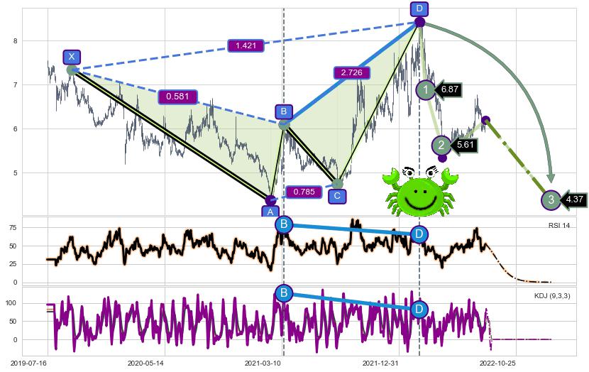 ➣ 已完成【螃蟹】形态起点X: 2019-09-12, 终点D: 2022-02-28, 共594交易日