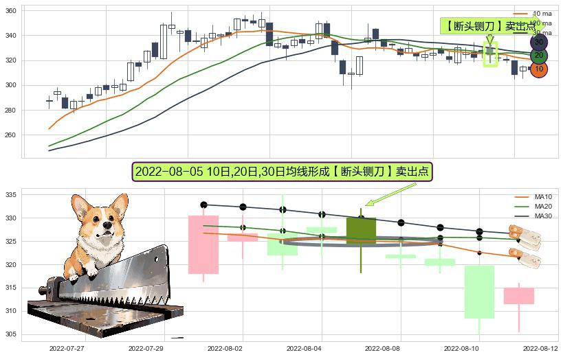 ⚀ 2022-08-05日显现 10日-20日-30日均线 【断头铡刀】卖出点 看空信号,后市看跌,卖出