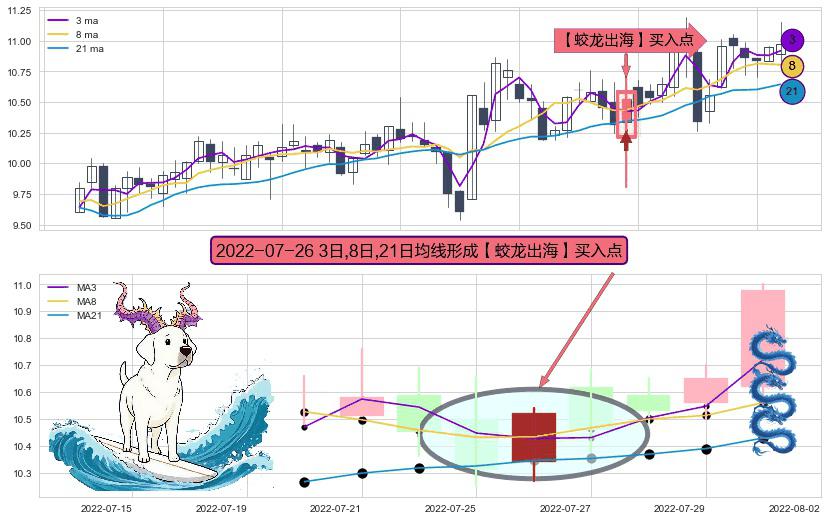 ⚀ 2022-07-26日显现 3日-8日-21日均线 【蛟龙出海】买入点 看多信号,后市看涨,买入