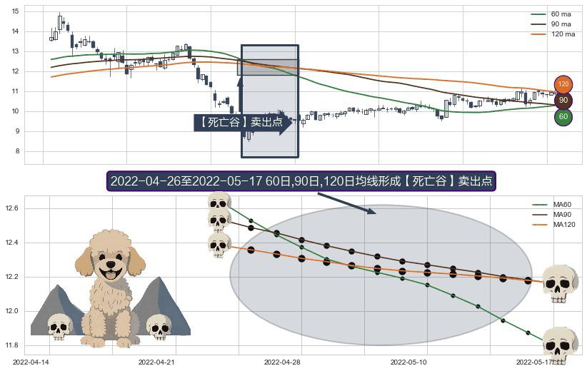 ⚀ 2022-04-27-日至2022-05-17-日显现 60日-90日-120日均线 【死亡谷】卖出点 看空信号,后市看跌,卖出