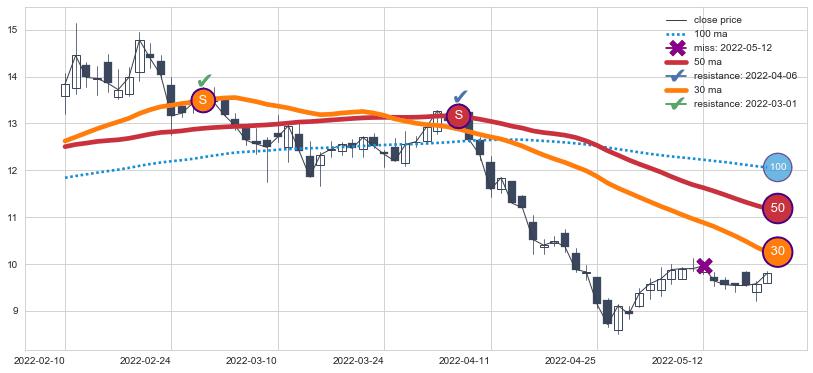 ⚀ 2022-03-04日-2022-06-07日显现 30日-60日-90日均线 【高山滑雪】买入点 看多信号,后市看涨,买入