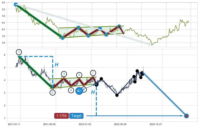 ➣ 最小中继整理跌幅→𝐇: 2.510 (𝐇旗杆的长度:旗杆起点→顶点)