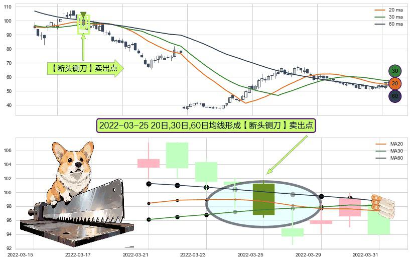 ⚀ 2022-03-25日显现 20日-30日-60日均线 【断头铡刀】卖出点 看空信号,后市看跌,卖出