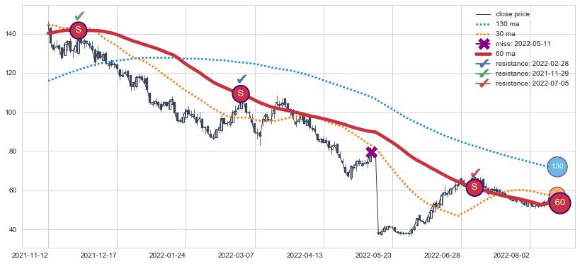 ⚀ 2022-03-24日-2022-06-01日显现 10日-20日-30日均线 【高山滑雪】买入点 看多信号,后市看涨,买入