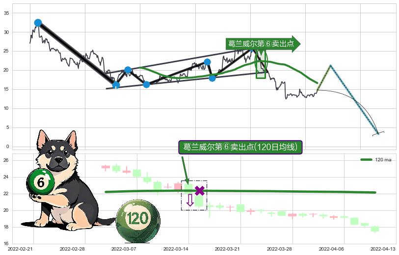 | 7 🅚:徐缓下降 ➕ 🎢:葛兰威尔第⑥卖出点卖出点信号形成后,猜想后续上涨趋势反转下跌趋势(均值回复) ☞ 看空信号 ⇥ 【均线】交织【🅚线】⇥ 综合量化分数: 43 | > |