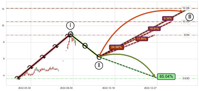 ➢ 循环浪继续向上【最低】位置(2022-12-22, 8.84),匹配聚类样本比例33.77%, 可能性概率11.80%