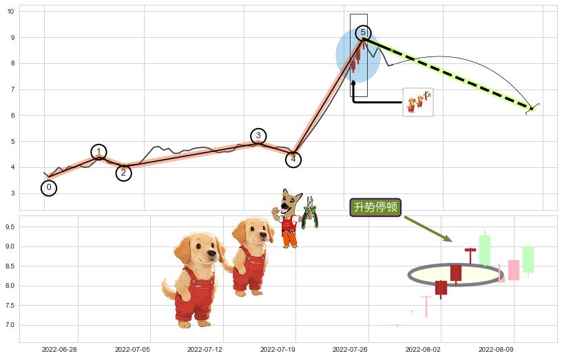 ➣ 收盘价(2022-08-08: 8.23 )→回踩→第一根k线高点(2022-08-03: 8.52 )