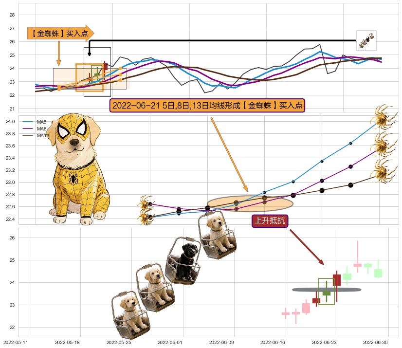 | 3 🅚:低档五阳线 ➕ 🎢:【金蜘蛛】买入点均线组合买入点信号形成后,猜想三条均线周期内的交易者都看好后市,持续上涨 ☞ 看多信号 ⇥ 【均线】交织【🅚线】⇥ 综合量化分数: 53 | > |