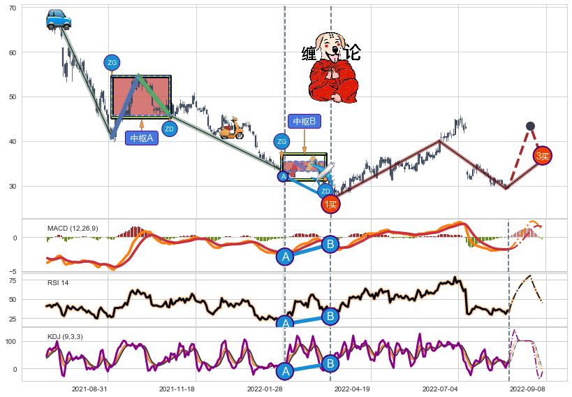| 14 🅚:上涨两颗星 | 上涨三颗星 ➕ ☯️:缠论买卖点下降缠:临近3买-猜想击穿突破3买后延续上涨趋势(大周期趋势均值回复后小周期持续趋势跟踪) ☞ 看多信号 ⇥ 【🅚线】交织【图形】⇥ 综合量化分数: 53 | > |