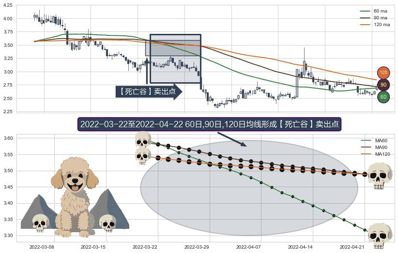 ⚀ 2022-03-23-日至2022-04-22-日显现 60日-90日-120日均线 【死亡谷】卖出点 看空信号,后市看跌,卖出