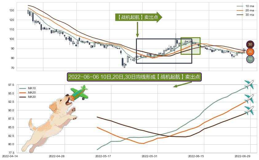 ⚀ 2022-05-12日-2022-06-28日显现 10日-20日-30日均线 【战机起航】卖出点 看空信号,后市看跌,卖出