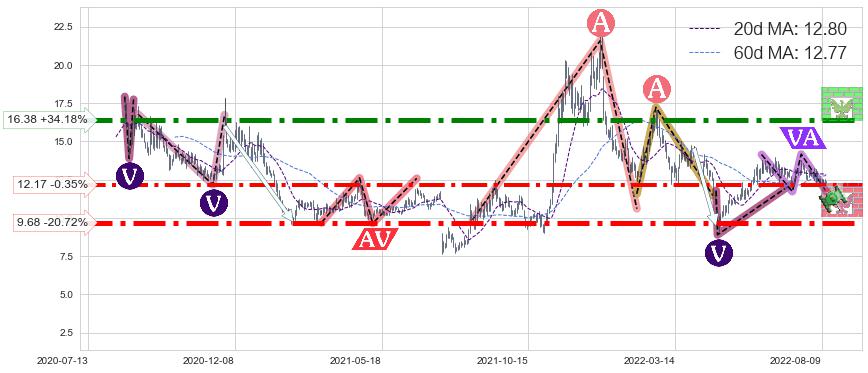 ♘ 支撑价格位12.17,可信任强度83.96%,距离最后交易2022-08-12形成的收盘价格12.21相差 -0.35%