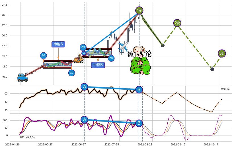 ➣ 【已完成】缠论 起点:2022-04-27,完成第1中枢A,完成第2中枢B,终点:2022-08-10,缠论共74交易日