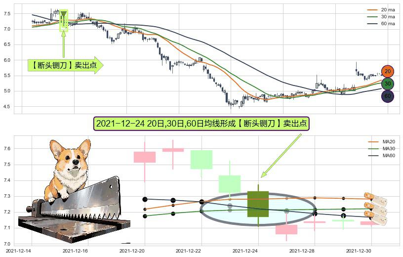 ⚀ 2021-12-24日显现 20日-30日-60日均线 【断头铡刀】卖出点 看空信号,后市看跌,卖出