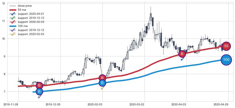 ⚀ 2022-01-13日-2022-06-09日显现 30日-60日-90日均线 【高山滑雪】买入点 看多信号,后市看涨,买入
