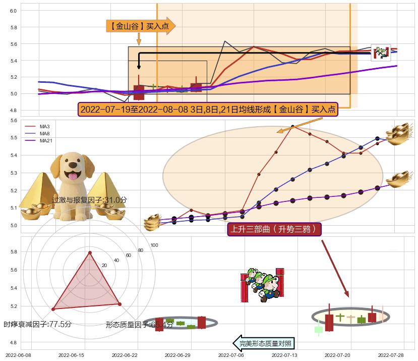 | 4 🅚:上升三部曲(升势三鸦) ➕ 🌊:波浪理论猜想下跌浪5已形成,猜想后续形成abc反弹上涨(均值回复) ☞ 看多信号 ⇥ 【🅚线】交织【图形】⇥ 综合量化分数: 54 | > |