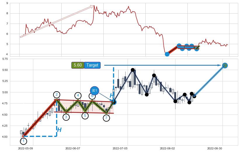 ➢ AI预测: 假定反转如期而至,第❸价格目标位置(2022-08-25, 5.50)