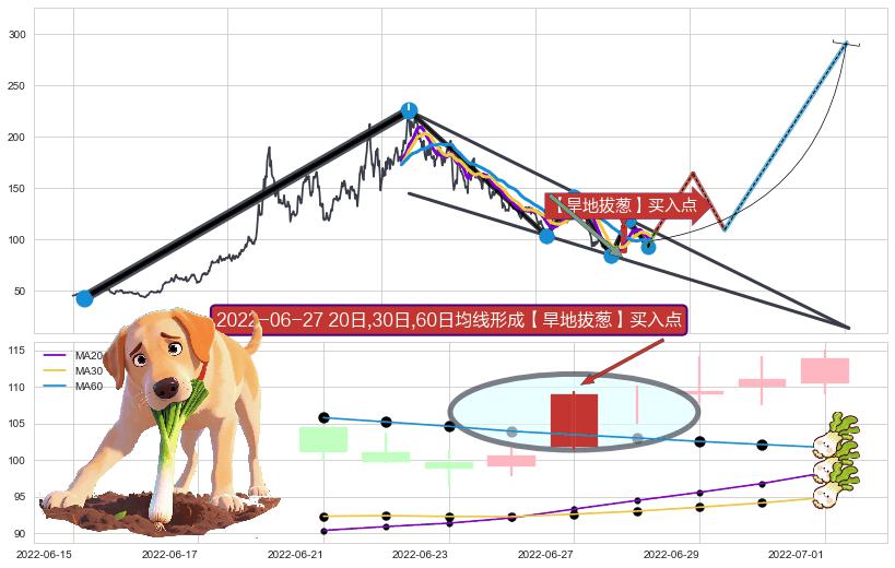 | 3 🅚:降势受阻 ➕ 📐:降楔型猜想突破点临近,临近关键阻力位,预期拉升突破上涨 ☞ 看多信号 ⇥ 【🅚线】交织【图形】⇥ 综合量化分数: 55 | > |