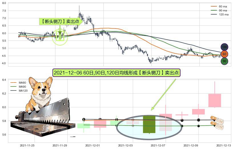 形态多维评估: ⚀ 2021-12-06日显现 60日-90日-120日均线 【断头铡刀】卖出点 看空信号,后市看跌,卖出