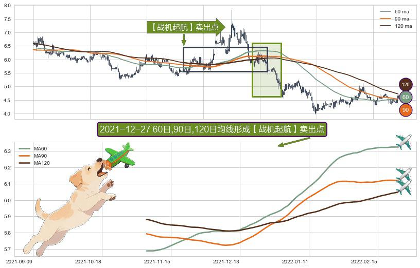 形态多维评估: ⚀ 2021-11-04日-2022-02-23日显现 60日-90日-120日均线 【战机起航】卖出点 看空信号,后市看跌,卖出
