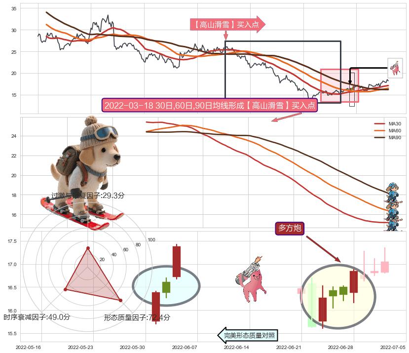 | 5 🅚:早晨之星(黎明之星) ➕ 🎢:【高山滑雪】买入点均线组合买入点信号形成后,猜想后续下行结束,持续反弹上涨(均值回复) ☞ 看多信号 ⇥ 【均线】交织【🅚线】⇥ 综合量化分数: 57 | > |