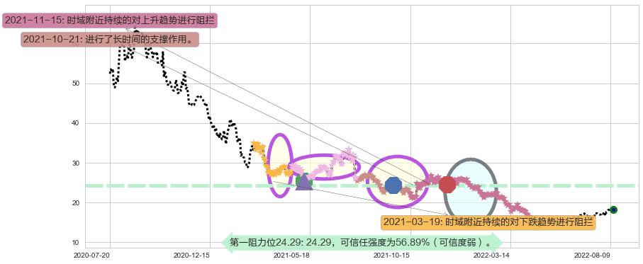 ♘ 阻力价格位24.29,可信任强度56.89%,距离最后交易2022-08-12形成的收盘价格18.23相差 +33.23%