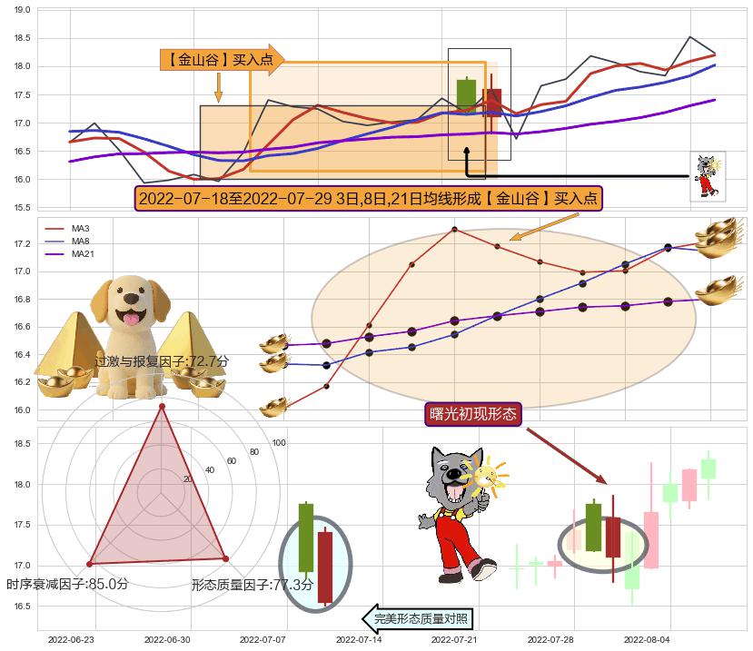 | 2 🅚:冉冉上升|稳步上涨 ➕ 🎢:【金银山谷】买入点均线组合买入点信号形成后,猜想后续突破上升,沿着向上的尖头三角上涨 ☞ 看多信号 ⇥ 【均线】交织【🅚线】⇥ 综合量化分数: 62 | > |