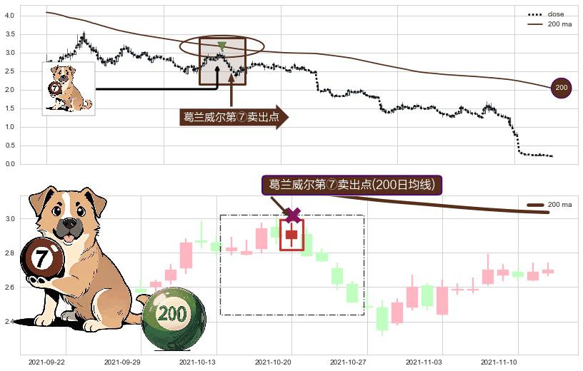 形态多维评估: ⚀ 2021-10-20-日显现 葛兰威尔均线 200日均线 第⑦卖出点 下降趋势的中继信号,后市看跌,卖出信号