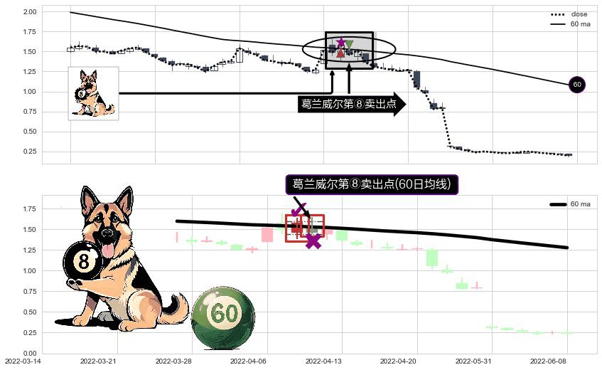 形态多维评估: ⚀ 2022-04-11-日显现 葛兰威尔均线 60日均线 第⑧卖出点 下降趋势的中继信号,后市看跌,卖出信号