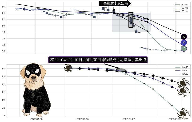 形态多维评估: ⚀ 2022-04-21日显现 10日-20日-30日均线 【毒蜘蛛】卖出点 看空信号,后市看跌,卖出