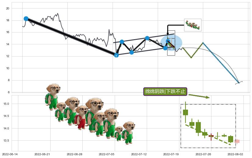 ➣ D点拟合预测价格18.42,距离最后交易收盘价格13.38相差 +37.68%