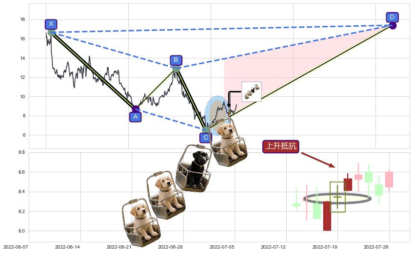 ➣ D点拟合预测价格17.39,距离最后交易收盘价格9.10相差 +91.12%
